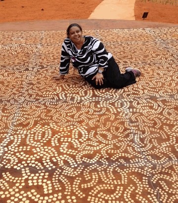 Grandmother’s Country, by Teresa Purla McKeeman (Teresa Pwerle), is at the centre of the Red Centre Garden. The striking laser-cut steel and grout work, 5.6 m square, was commissioned by the Friends.