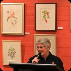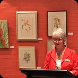 The exhibition opening was on 21 March. While viewing the exhibition, invited guests enjoyed food and wine and were entertained by musical group The Shenanigans. Guest speaker was botanical artist Sharon Field who, in a wide-ranging and entertaining talk, urged botanical artists to push the boundaries of their discipline and aim for the wow factor in their work – and noted that artists represented in this exhibition do just that.