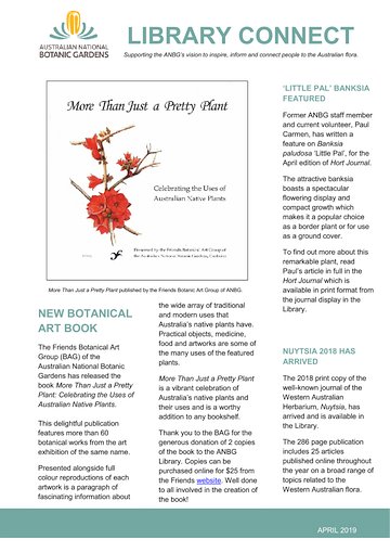 The April 2019 edition of Library Connect (PDF, 310 kB) includes: More Than Just a Pretty Plant / Friends Botanical Art Group of the Australian…