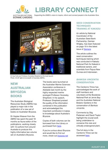The August 2018 edition of Library Connect (PDF, 625 kB) includes: Australian Bryozoa Volume 1: Biology, Ecology and Natural History and Volume 2: Taxonomy of…